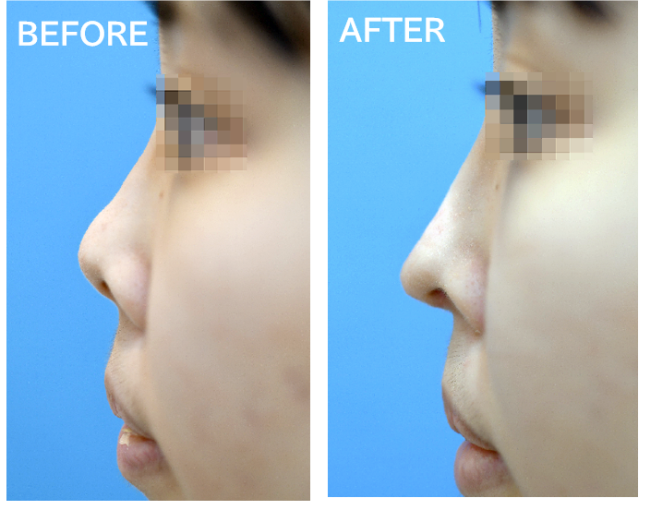 鼻先を下に向けるには移植軟骨のセットの仕方に多少の工夫が必要になること、また鼻先の上のsupratipと呼ばれる箇所に膨らみが生じやすいため、鼻を横から見た際のシルエットがシャープで美しいラインに仕上がらないことがあるからです。